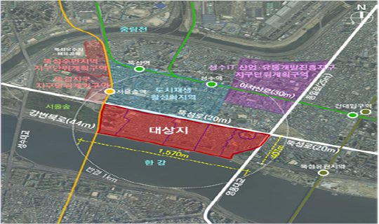 ¼­¿ï ¼ºµ¿±¸ ¼º¼öÀü·«Á¤ºñ±¸¿ª 1~4±¸¿ªÀÌ ÃÖ°í ³ôÀÌ 250m 9428¼¼´ëÀÇ ´ë±Ô¸ð ¾ÆÆÄÆ®´ÜÁö·Î Á¶¼ºµÈ´Ù. µµ½Ã¿Í ÇѰ­À» ¿¬°áÇÏ´Â ¼öº¯Ä£È­ ÁÖÅôÜÁö·Î Å»¹Ù²ÞÇÒ Àü¸ÁÀÌ´Ù.
