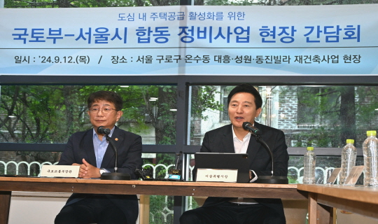 ±¹ÅäºÎ ¹Ú»ó¿ì Àå°ü°ú ¿À¼¼ÈÆ ¼­¿ï½ÃÀåÀÌ ¼­¿ïÀÇ Àç°ÇÃà»ç¾÷ ÇöÀåÀ» ¹æ¹®ÇØ ¡®½Å¼ÓÇÑ Á¤ºñ»ç¾÷ ÃßÁø¡¯ ÀÇÁö¸¦ ÀçÈ®ÀÎÇß´Ù. ¹«¾ùº¸´Ù ¡®8.8ÁÖÅðø±Þ´ëÃ¥¡¯ÀÌ Â÷Áú ¾øÀÌ ÁøÇàµÉ ¼ö ÀÖµµ·Ï ¡®Àç°ÇÃࡤÀç°³¹ß ÃËÁø Ư·Ê¹ý¡¯ ±¹È¸ Åë°ú¸¦ Ã˱¸Çß´Ù.